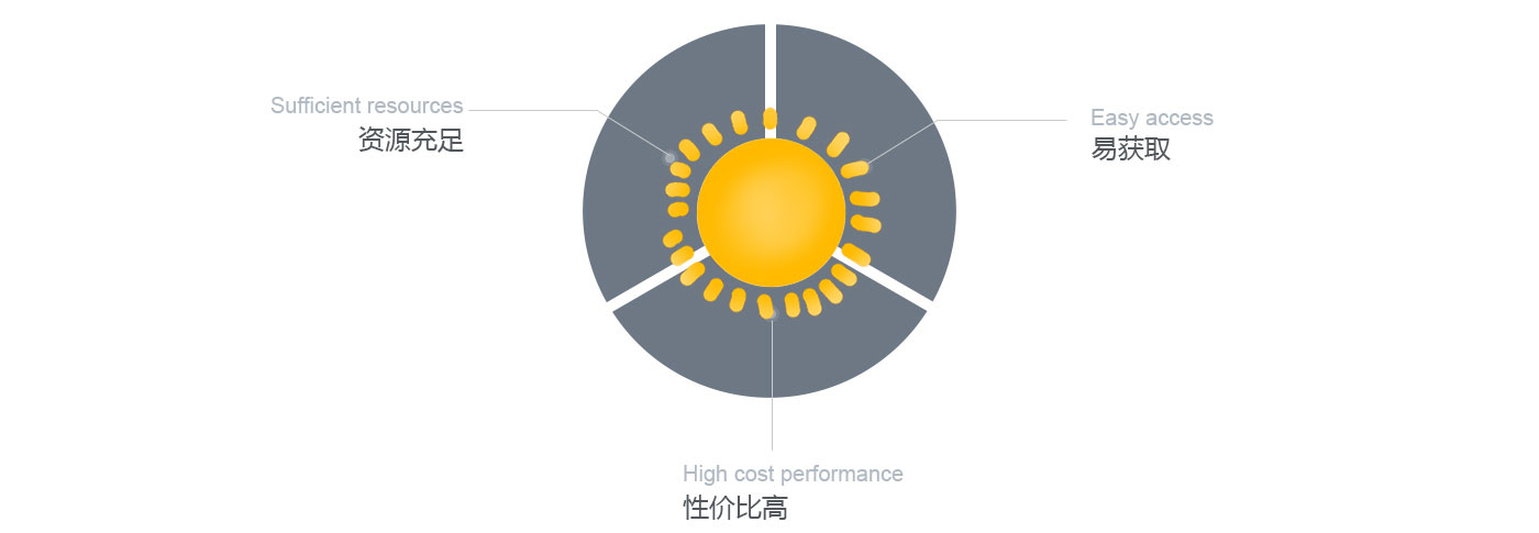 太陽(yáng)在地球上每照射一小時(shí)所產(chǎn)生的能量,就可以滿(mǎn)足全球整年的能源需求。與需要提煉燃燒化石燃料,占地又費(fèi)時(shí)的傳統(tǒng)能源不同,任何人都能購(gòu)買(mǎi)和安裝太陽(yáng)能組件并享受豐富的太陽(yáng)能資源。從長(zhǎng)遠(yuǎn)來(lái)看,使用太陽(yáng)能還可顯著并長(zhǎng)期節(jié)約用電成本。